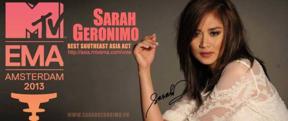 Pinoy Sarah Geronimo nominated in MTV Europe Music Award 2013, Click and VOTE ———>>>>>> http://asia.mtvema.com/artists/sarah-geronimo/jfoyh8 Proud to be Pinoy!!!